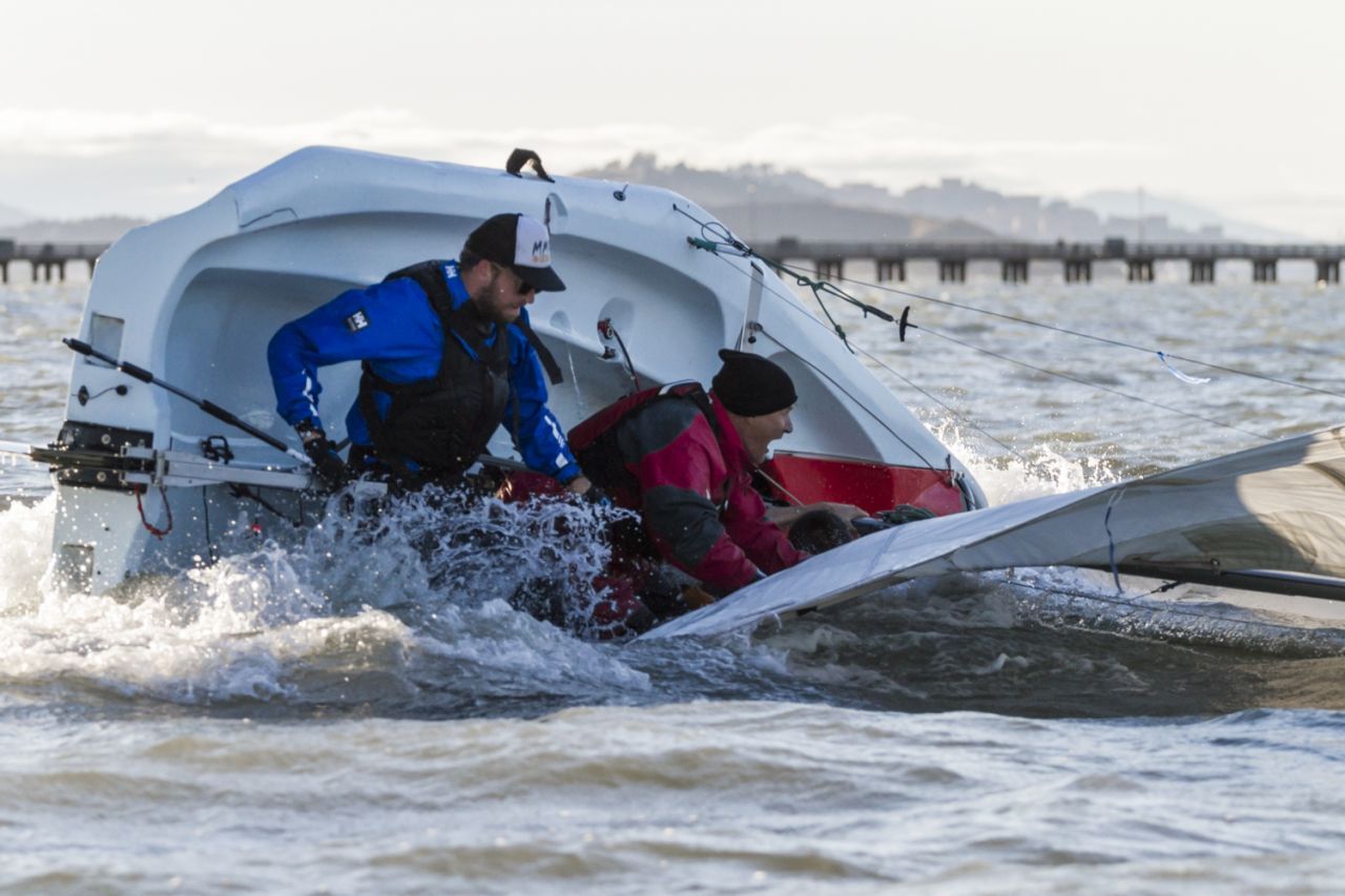 We also had a cruise to Angel Island on Friday 7/11, which was, alas woefully under-photographed.  Did it even happen if we don't have selfies to prove it? We cruised dinghies to Angel Island, with Mark Playsted organizing. We took the third (new) Venture for what turned out to be a shakeout sail and yours truly plummeted into the Bay when the franken-trap line we rigged broke as soon as I swung out off the rail (brrrr). Picnic on the island followed by a fun run back to Berkeley through the Slot--woohoo!
