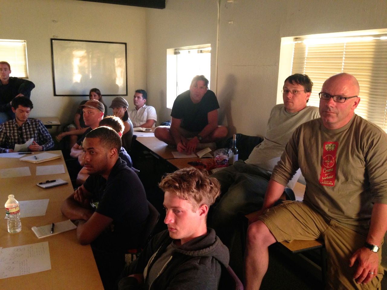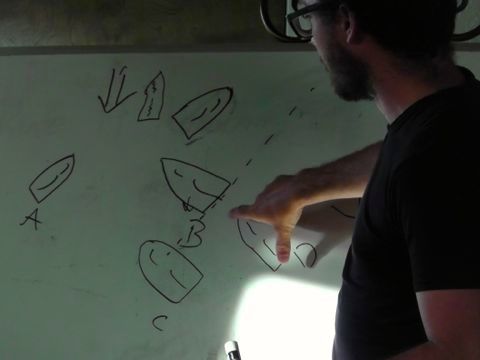 As you may have heard, during the month of April we conducted a racing study group with the intention of improving racing skills, rules and tactics for club members. The group was oversold with 22 members and 4 volunteer instructors. We were fortunate to recruit some of our best racing resources to lead both classroom and on-the-water practice sessions, including Cory Schillaci, Paul Kamen, Seamus Vanecko, and Mark Playsted. In this post I want to share a couple of pictures, Cory's rules quiz handout for you to test your own knowledge of the rules, and the entire tactics classroom session video by Paul Kamen. I did not take pictures from the on-the-water sessions because we were all on the water, but suffice to say it was exciting with up to 11 boats on the water plus this skiff - and with at least one NASCAR style pile up. Fortunately there was no damage or injuries.